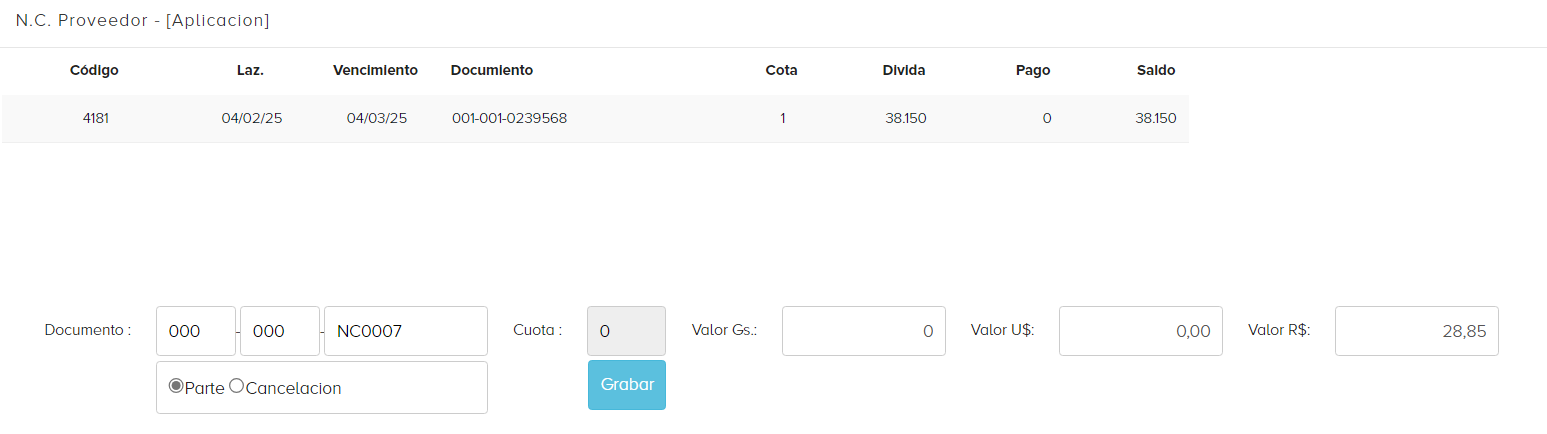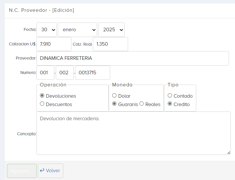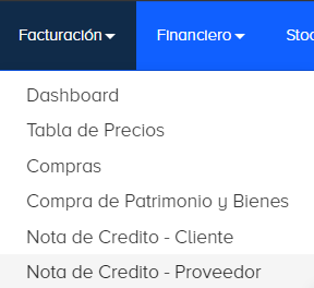 Para crear una Nota de Crédito - Proveedor, nos dirigimos a FACTURACIÓN/NOTA DE CREDITO - PROVEEDOR y le damos al botón de Nuevo.