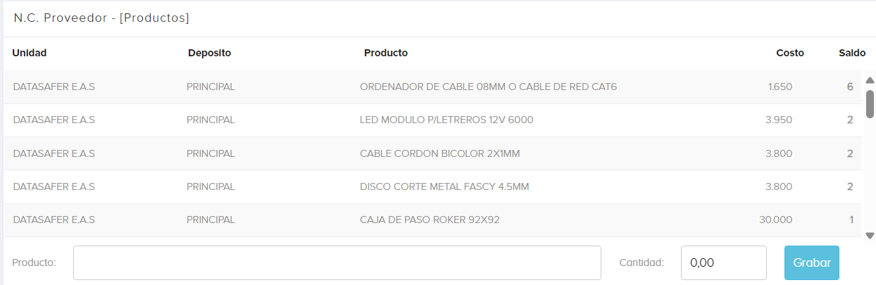 1.3 Seleccionamos el producto a devolver, luego damos el botón de Grabar