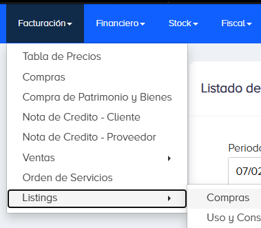 Hacer click en Listado - Compras