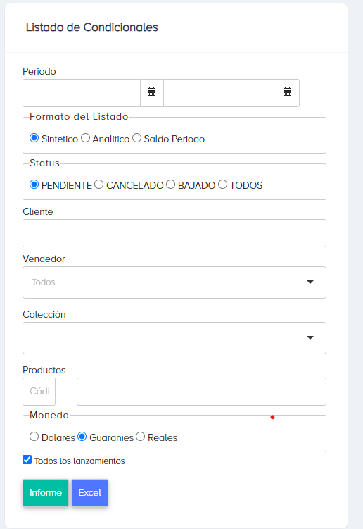 Empezamos colocando de que fecha a que fecha queremos filtrar nuestro listado
