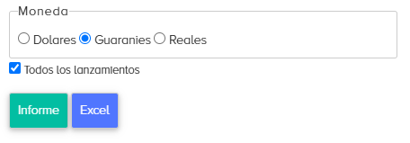 Luego seleccionar la moneda, marcar todos los lanzamientos, luego informe.