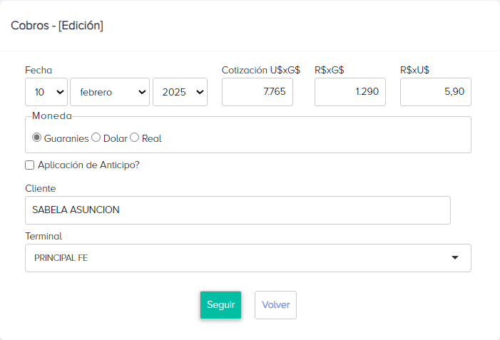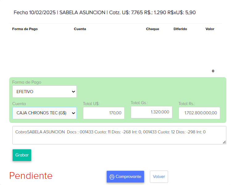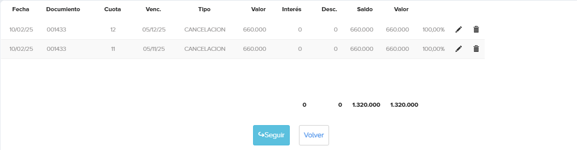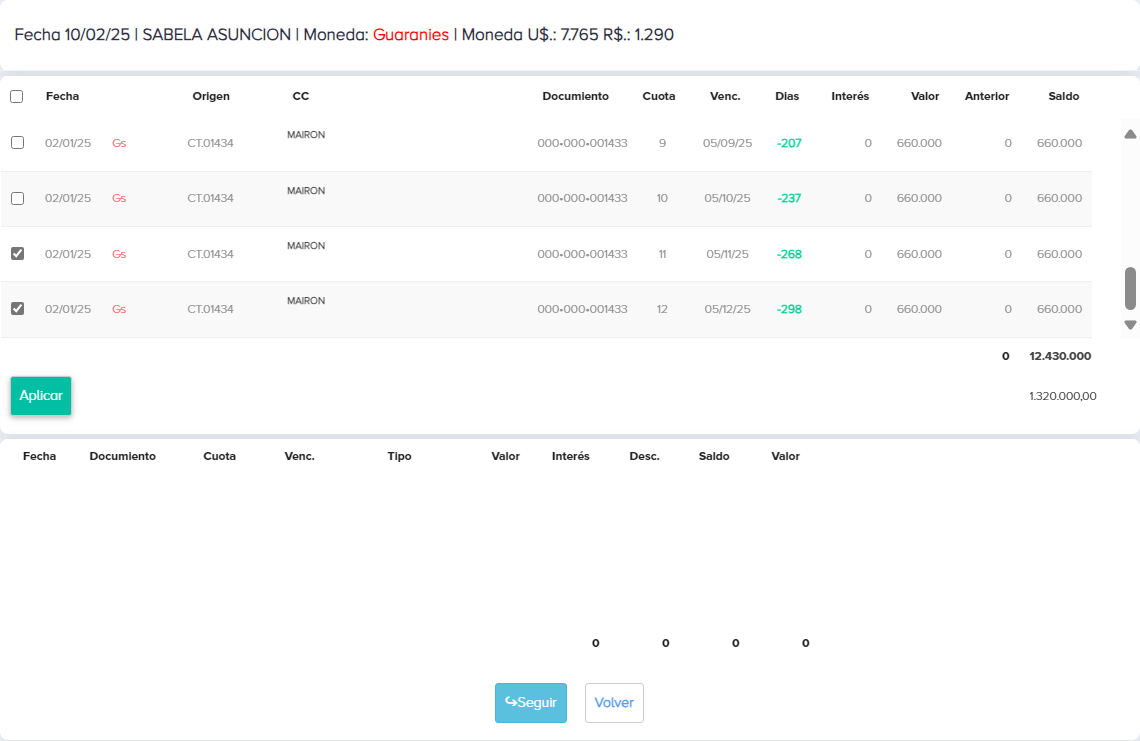 1.3 Seleccionamos la cuota a cobrar y damos al botón de Aplicar