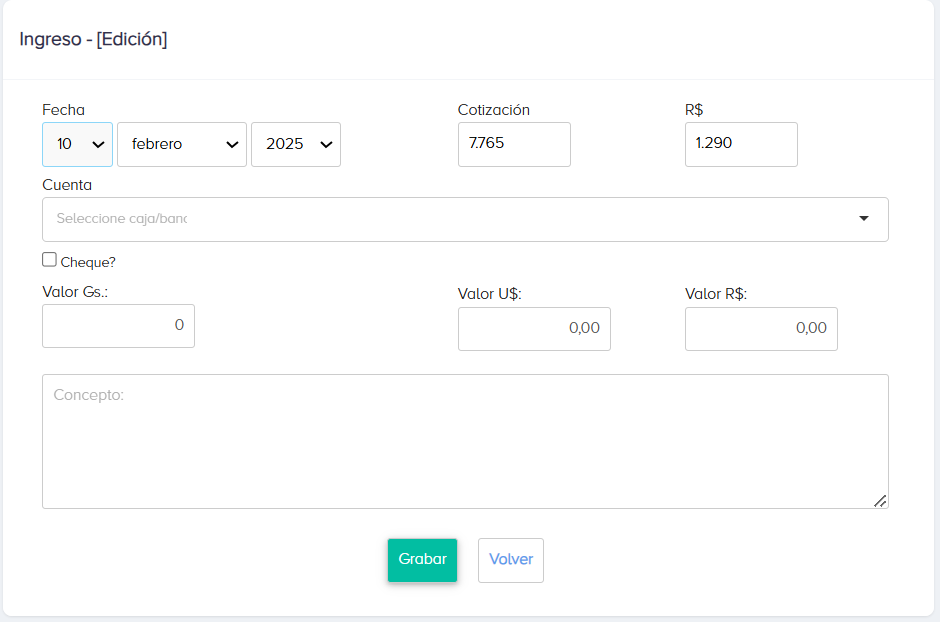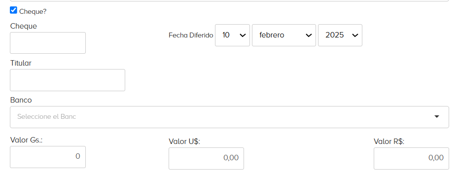 Si no es un cheque solo no seleccionar “cheque” y rellenar el valor nada más
