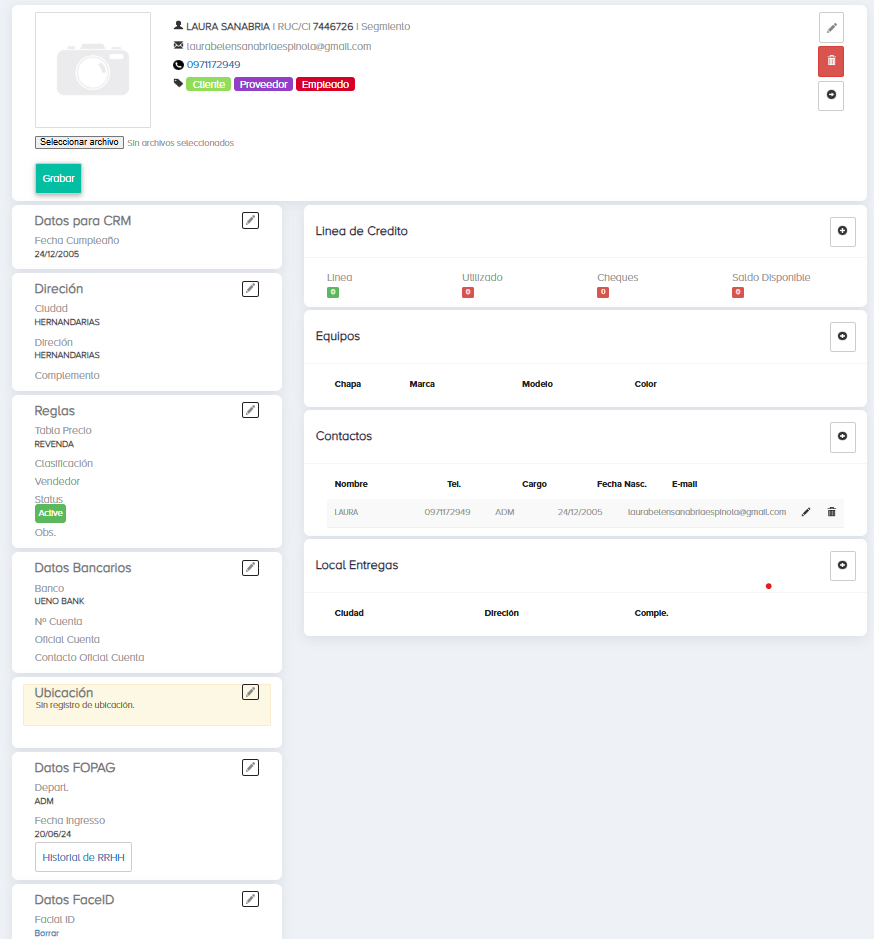 Y para editar alguna información es clicar encima del cliente y te aparece la siguiente pantalla: