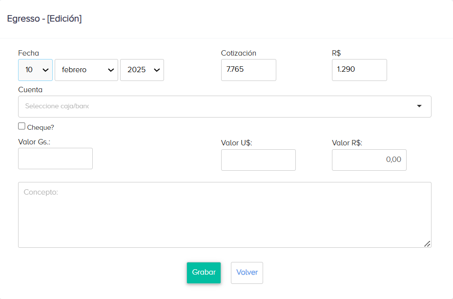 Si no es cheque, solamente no seleccionar esa parte y colocar el valor de dicho Egreso