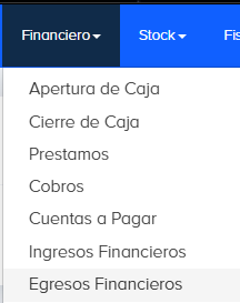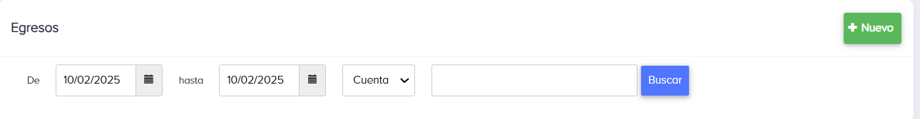 Al hacer click sobre Egresos financieros, nos llevará a la Siguiente pantalla. Seleccionaremos “NUEVO”
