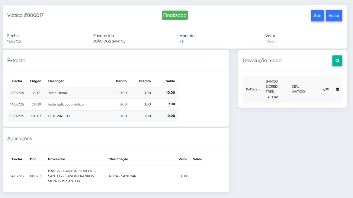 Pode acontecer do colaborador não usar todo valor do viático e precisar devolver ele para a empresa, então nesse caso, vai ser feito da seguinte forma.