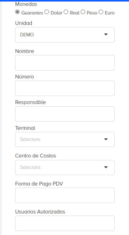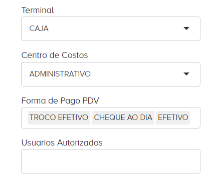 En formas de Pago PDV, se ponen las etiquetas dependiendo del tipo de cuenta que se estará utilizando(Caja o banco). Ejemplo de Caja: