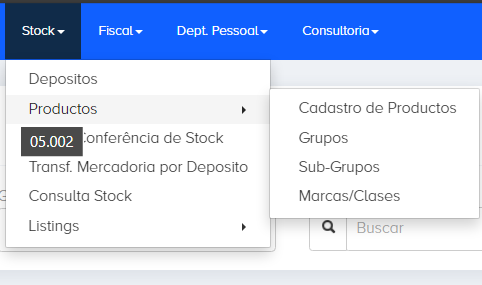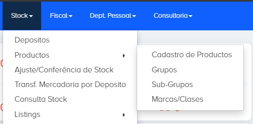 4.1 Para crear un producto, nos vamos a la sección de Stock/Producto/Cadastro de producto