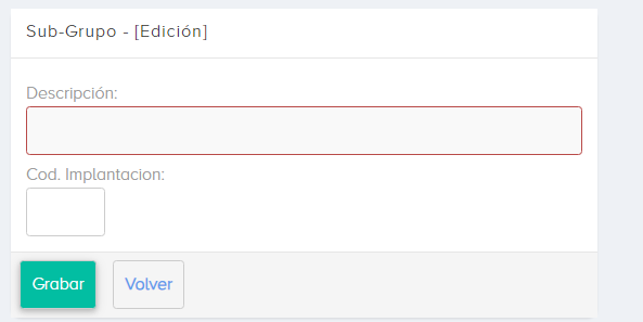 Para la rama de Sub-Grupo, nos dirigimos en la misma ruta: STOCK/PRODUCTOS/SUB-GRUPOS.