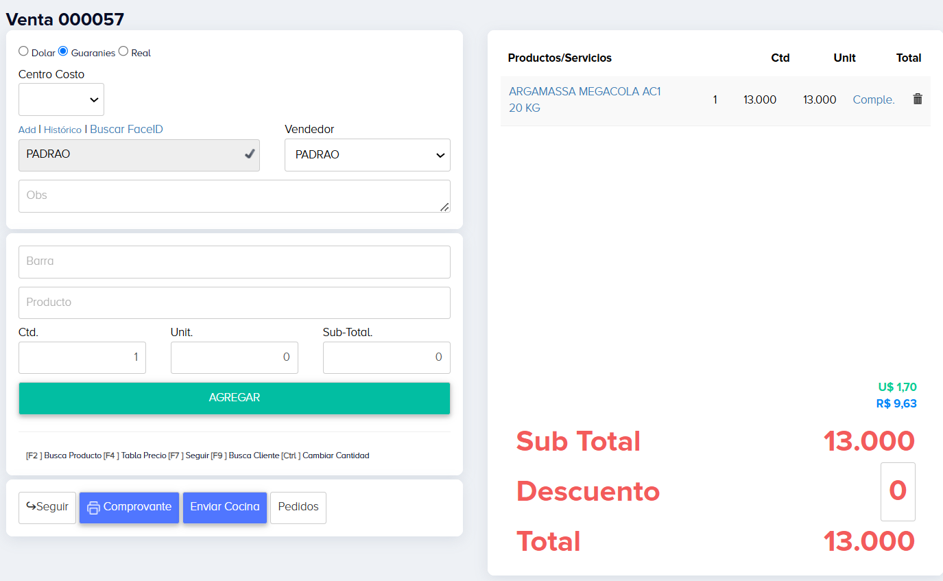 En Ctd agregas la cantidad que llevó dicho producto, luego con la tecla “Tab” de tu teclado, rellenará automáticamente el precio unitario y el Sub Total