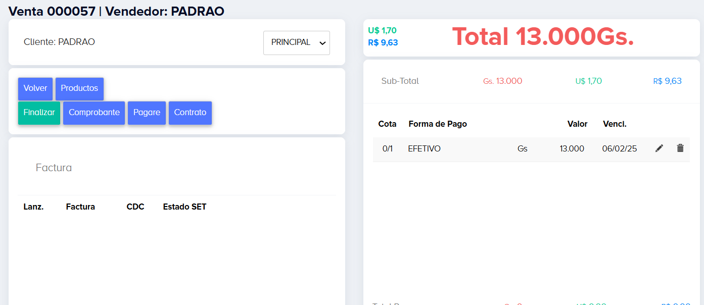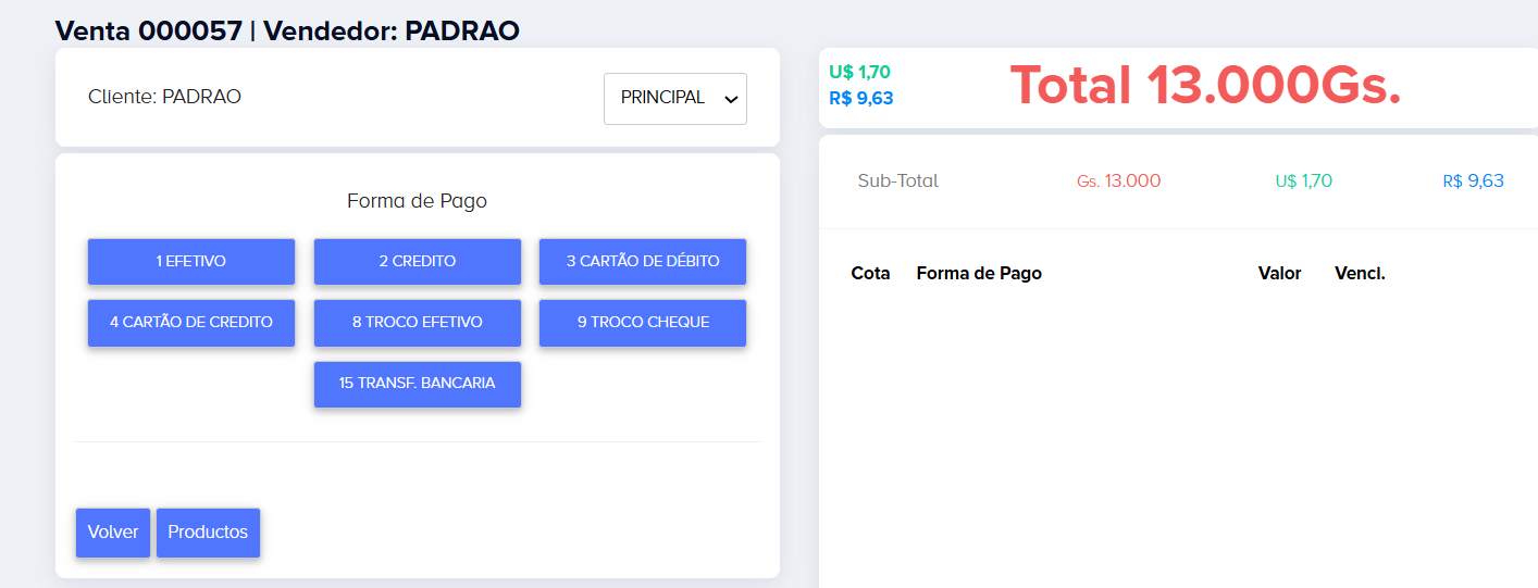 Si es un cliente Ocasional solo dejar en “Padrão”
