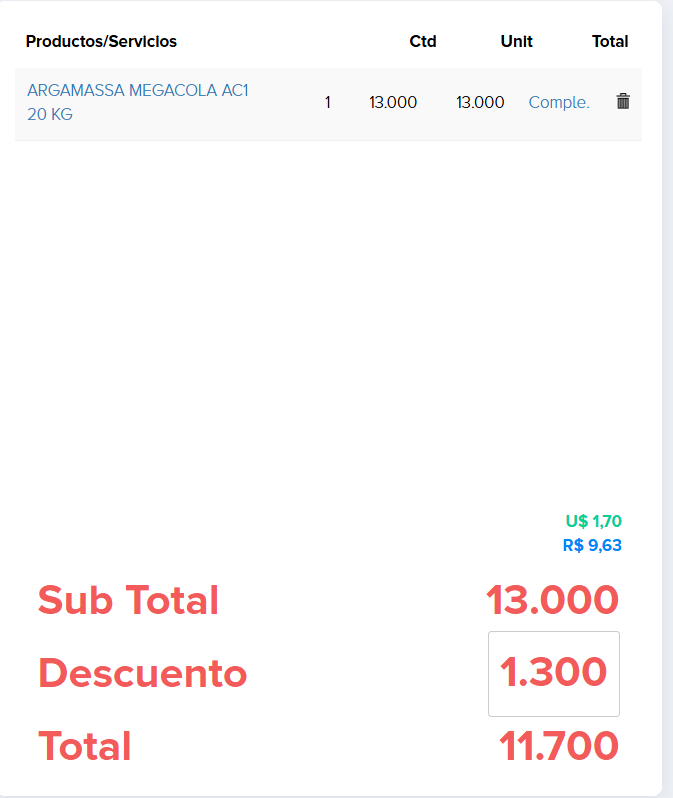 Te sale detalladamente el valor, y podes agregar un descuento.